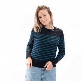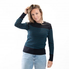 Wrap yourself in a soft setting with our pretty SAUZON sailor sweater in pure merino wool. Are you looking for an ally to protect you from the cold ? Do not search anymore ! The SAUZON sweater is there to protect you from the wind and biting cold. Emblematic of our beautiful Brittany and recognizable, our SAUZON sailor sweater is a must in our collections and it will soon be a must in your wardrobe ! This feminine sailor sweater has been designed to highlight feminine shapes. A fitted cut, ribbed details on the round neckline as well as the 3 buttons on the left shoulder, everything comes together to bring you a feminine touch for a 100% sailor look. Choose your favorite among our many colors of the moment, plain (navy, dragonfly) or striped (navy/dragonfly, navy/ecru, navy/red, navy/camel, ecru/navy). You will inevitably find the color that suits you best !